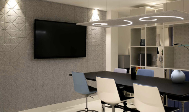 Debido a la tendencia de diseño de trabajo en equipo tipo «OPEN SPACES», de espacios abiertos y comunes, sin distincion de categorias o espacios entre compañeros, cada dia se ha vuelto mas importante mantener nuestras oficinas, lo mas aisladas acusticamente posible, para evitar interferencias entre compañeros y los llamados ruidos molestos que pueden complicar y mucho el trabajo del dia a dia en muchas oficinas. Es por ello que en los ultimos años se han multiplicado los productos diseñados para este fin. Paneles acusticos que multitud de diseños, colores y formas. Para mas informacion , le recomendamos que contacte con nuestro departamento comercial.