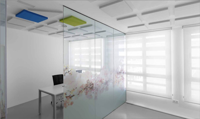 PONTE EN CONTACTO CON NOSOTROS Y TE PREPARAREMOS UNA SOLUCIÓN A TU MEDIDA. CONTAMOS CON PANELES ACÚSTICOS TAPIZADOS DESCOLGADOS DEL TECHO, EN PAREDES, EN TOTEM DE SUELO, EN CRISTALES, ETC. PREGUNTANOS SIN COMPROMISO
